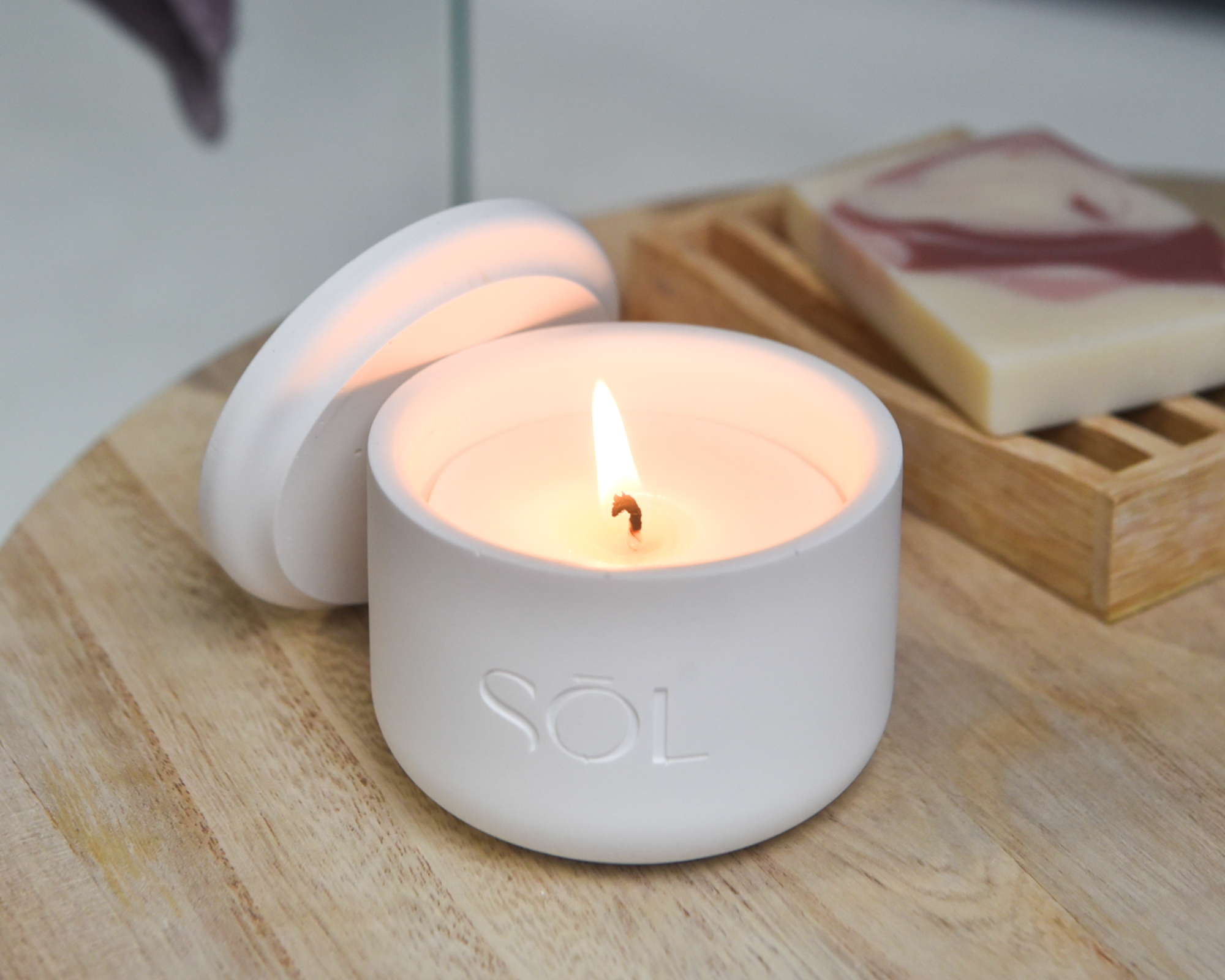 Cire 100% végétale, mèche en coton, parfum sans CMR et sans phtalates.